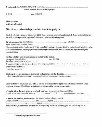 Úřady > Městský úřad > Návrh na zrušení údaje o místě trvalého pobytu
