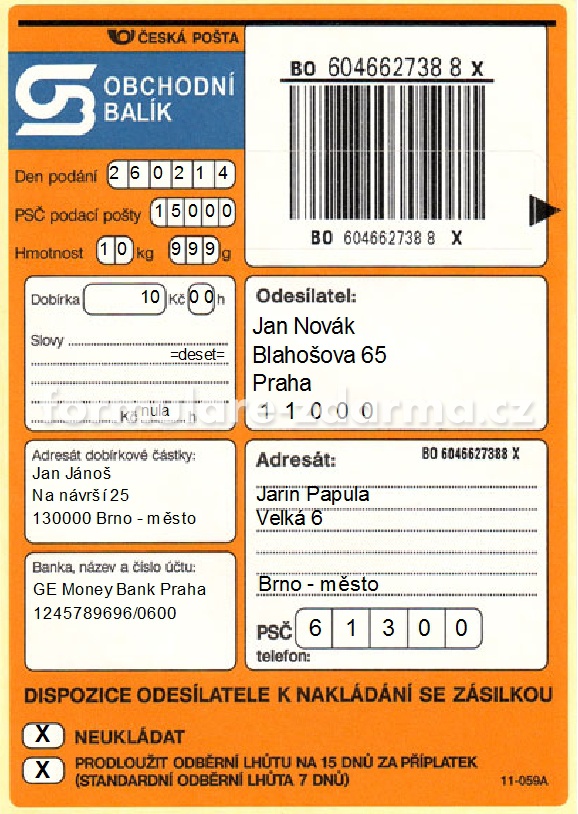Česká pošta > Obchodní balík